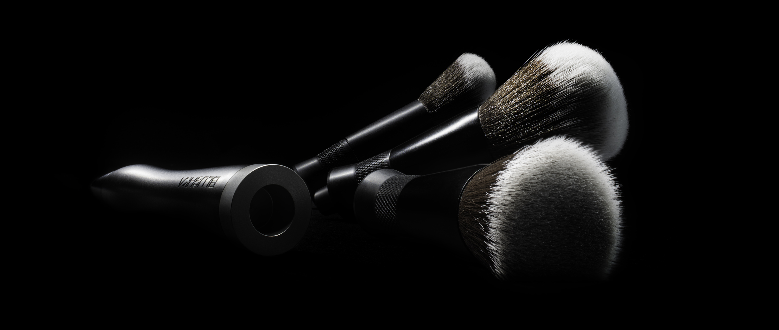 There are two beautifully crafted aluminium makeup brush wands. The large wand is compatible with six complexion brush heads and the small wand is compatible with two complexion concealer brush heads, six eye brush heads and one lip brush head.